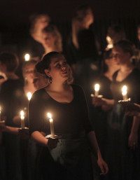 Du sidder i mørket sammen med 1800 andre og venter. Pludselig høres et par toner fra et klaver, og de smukkeste, klare pigestemmer fylder den mørke koncertsal i DR. Denne usædvanlige koncert i mørke er arrangeret af DR Pigekoret med dirigent Phillip Faber i samarbejde med Dansk Blindesamfund.