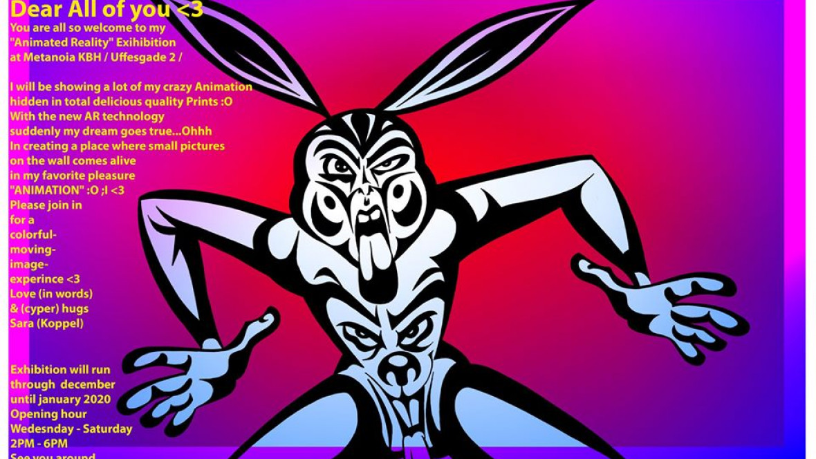 Udstillingen Animated Reality kan opleves indtil den 4. januar 2020 i Metanoia, Uffesgade 2, 2200 København N. Åbningstider: Onsdag til lørdag klokken 14-16, inklusive helligdage. Galleriet er lukket den 31. december og 1. januar.