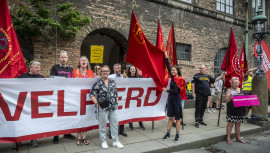 30. apr. 2021 - 06:00 Byggefag protesterer mod social dumping foran millionvilla i HellerupRøde faner på villavejen i Hellerup er et særsyn, men i morgen 1. maj svinger fanerne foran en millionvilla, der bliver sat i stand af polske håndværkere på dumpingvilkår.